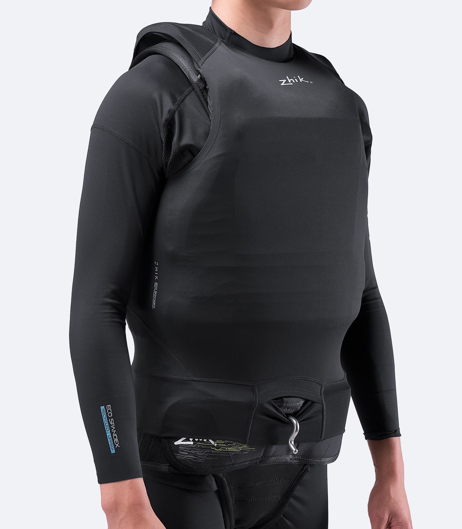 Tunne vabadust Zhik Eco Spandex Race Vestis. Piiramatu liikuvus ja uskumatult kerge kate koos 3D-keha paneelidega tähendab, et rõivas sulandub sinuga ühte, kohandudes sinu kehaga liikumise ajal. Võistluslõige ja sisseehitatud trapetshaagi pesa parandavad vesti ergonoomikat ja integreeruvad sujuvalt allkantavate riietuseseadmetega. Valmistatud Recycled Repreve® nailonist, kõrge tihedusega kangas venib üle 200%, kuid naaseb alati oma algse kuju juurde, jäädes samas pehmeks ja paindlikuks kogu riietuse eluea jooksul. Mis on Repreve® Recycled Nylon? Repreve® on maailma number üks ringlussevõetud funktsionaalse kiu bränd. Kiud on valmistatud 100% ringlussevõetud materjalidest, sealhulgas tarbijate poolt kasutatud plastpudelid ja tootmisjäätmed. Tulemuseks on funktsionaalne kiud, millel on unikaalsed omadused, sealhulgas niiskuse eemaldamine, veekindlus ning kohanduv soojendamine ja jahutamine. Need on ka sertifitseeritud ja jälgitavad.